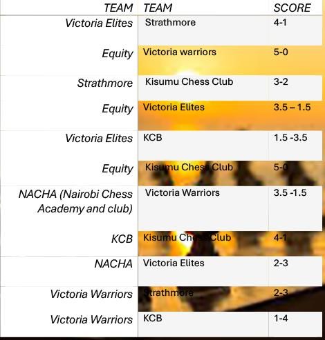 Lakeside breeze , the smell of fish and chess was in the air . The ambience at the Scottish Hotel, as the name suggests the owner is Scottish, was just amazing. Enough of little chit chat and unto the board. On Saturday September 28th and 29th , KCB , Nairobi Chess Academy and Club (NACHA), Strathmore , Victoria warriors ,Victoria Elites ,Kisumu Chess Club and equity were in Kisumu playing the league games. The games were action packed with a few surprises such as Hugh Masiko of Equity and Sinoya Evans of Victoria elites .Sinoya won the game with the black pieces, handing Hugh his first loss in a classical game this year. Equity however won the game with 3.5 to 1.5 .